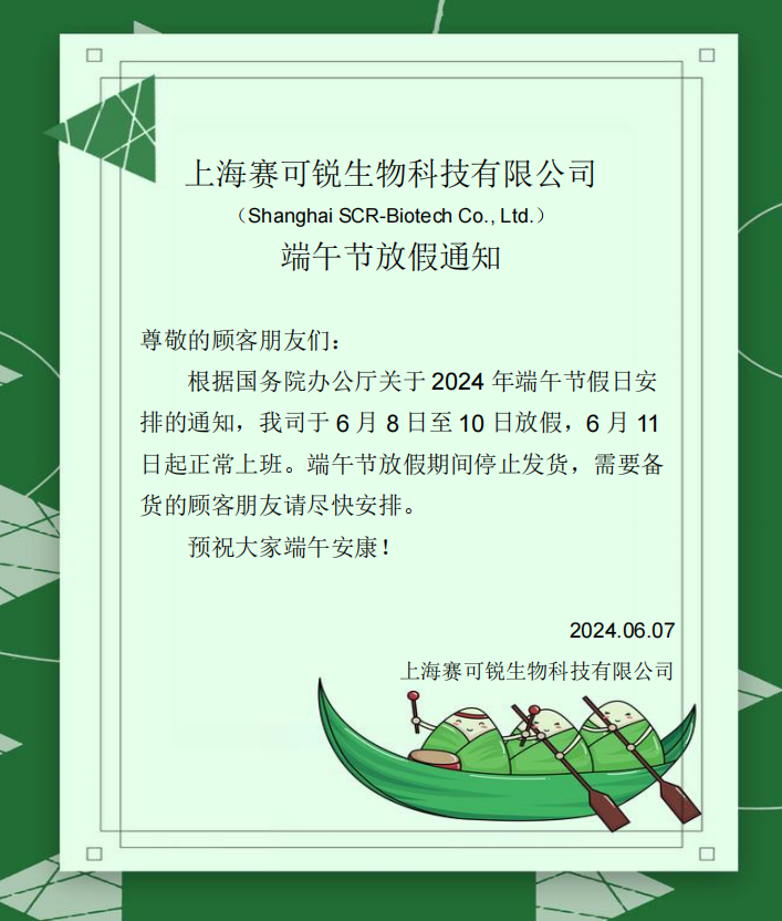 上海賽可銳(Shanghai SCR-Biotech Co., Ltd.) 端午節(jié)放假通知