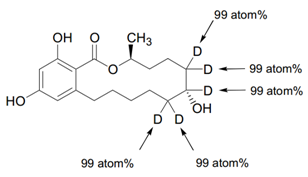 同位素內標物的豐度(enrichment)在報告上是以百分率表示的。但是這里的豐度指的是在每個位置上同位素元素的比例,也叫做同位素純度(isotopic purity )。所以報告上的豐度并不是表示全部是同位素的分子式所占的比例。